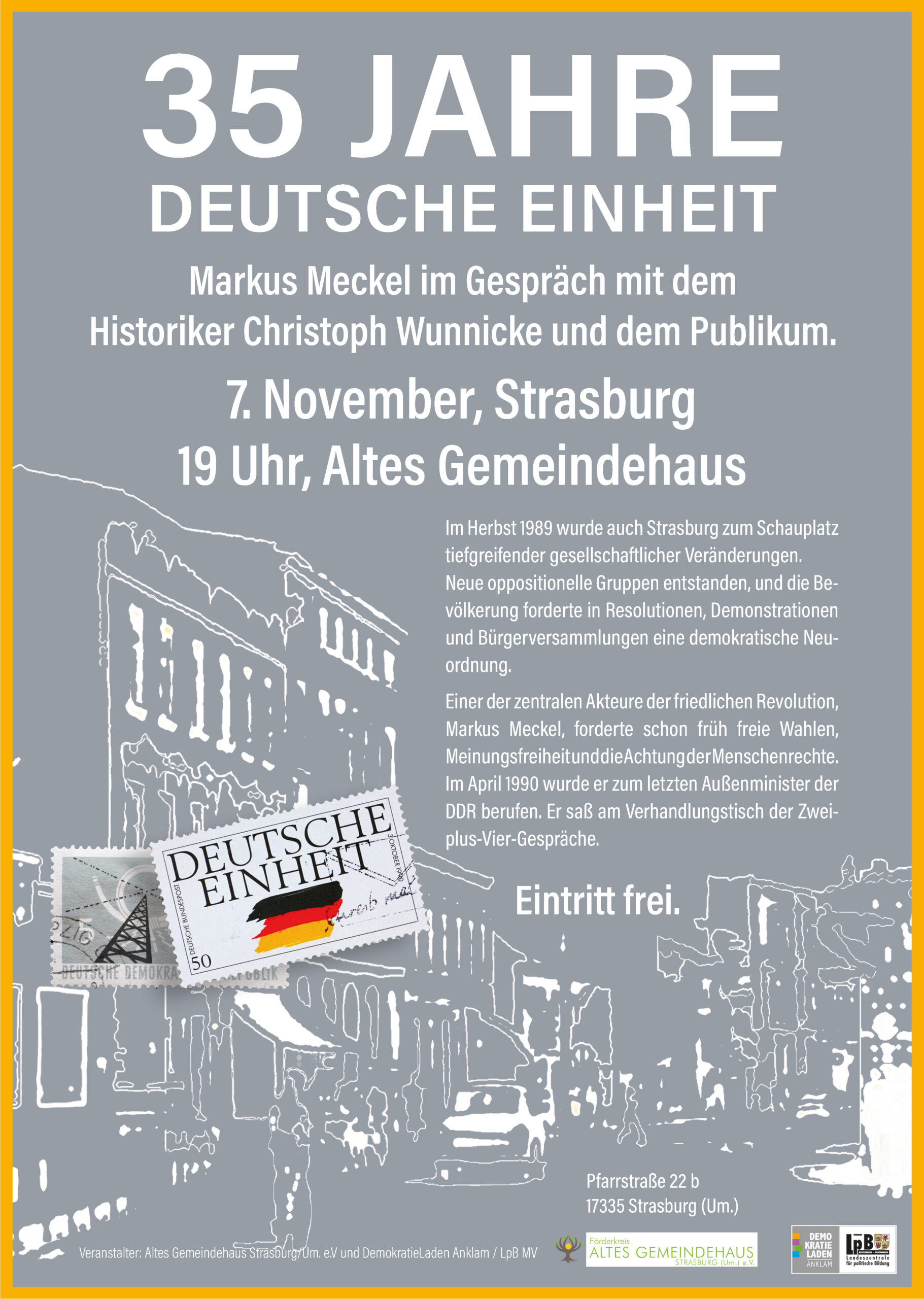Zum Thema “ 35 Jahre Deutsche Einheit“ gibt es sicherlich die verschiedensten Perspektiven. Lassen Sie uns einander zuhören und gemeinsam entdecken, was in den letzten 35 Jahren verloren und was gewonnen wurde. Die Veranstaltung ist kostenlos. Wir freuen uns über Ihre Teilnahme.