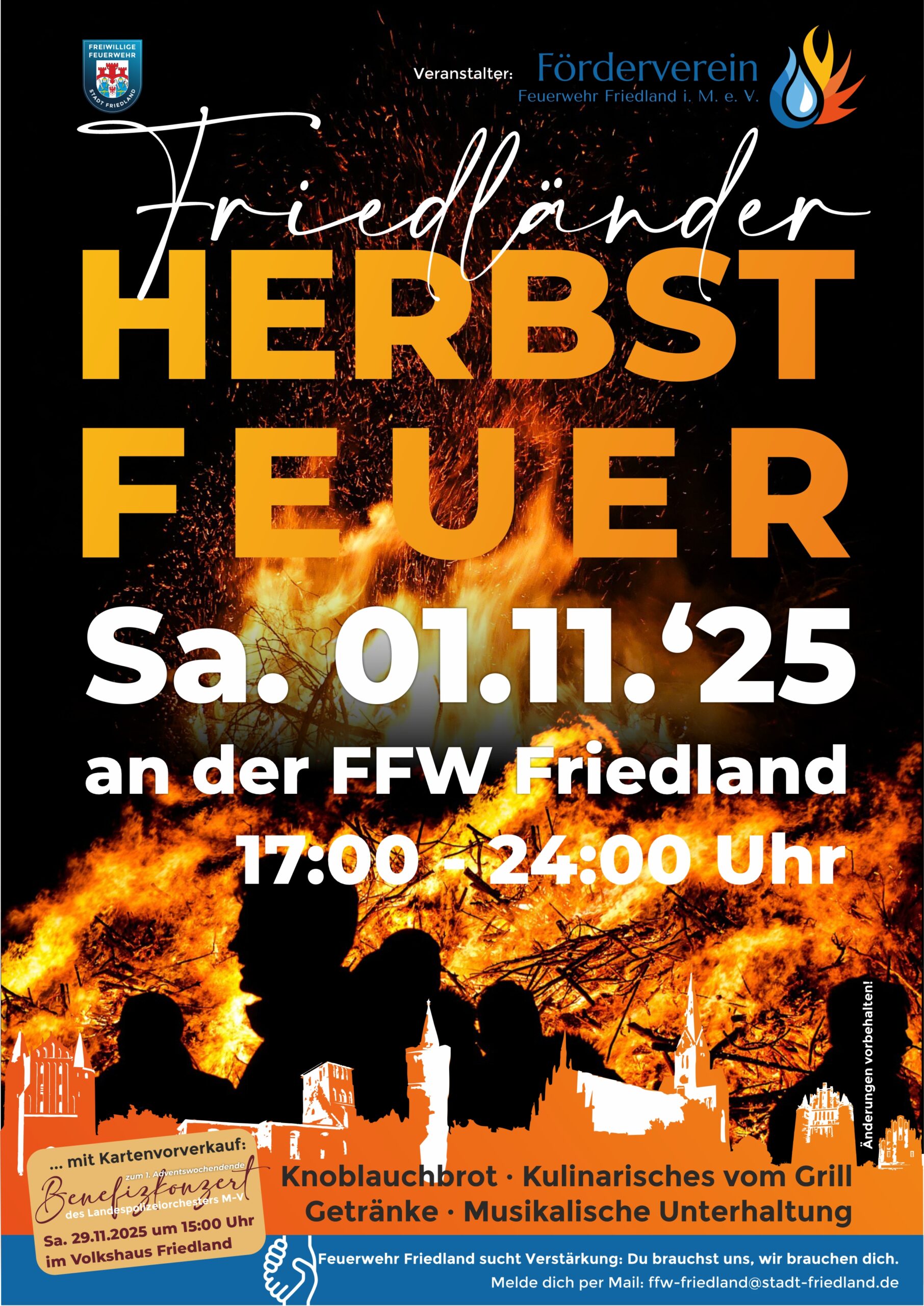 Ob als Geschenk, Familienausflug oder festlicher Ausklang des Novembers – dieses Konzert verspricht Musik, Gemeinschaft und den echten Zauber von Weihnachten. Der Feuerwehrförderverein Friedland e.V., die Stadt Friedland und das Landespolizeiorchester M-V freuen sich auf ein volles Volkshaus und strahlende Gesichter.